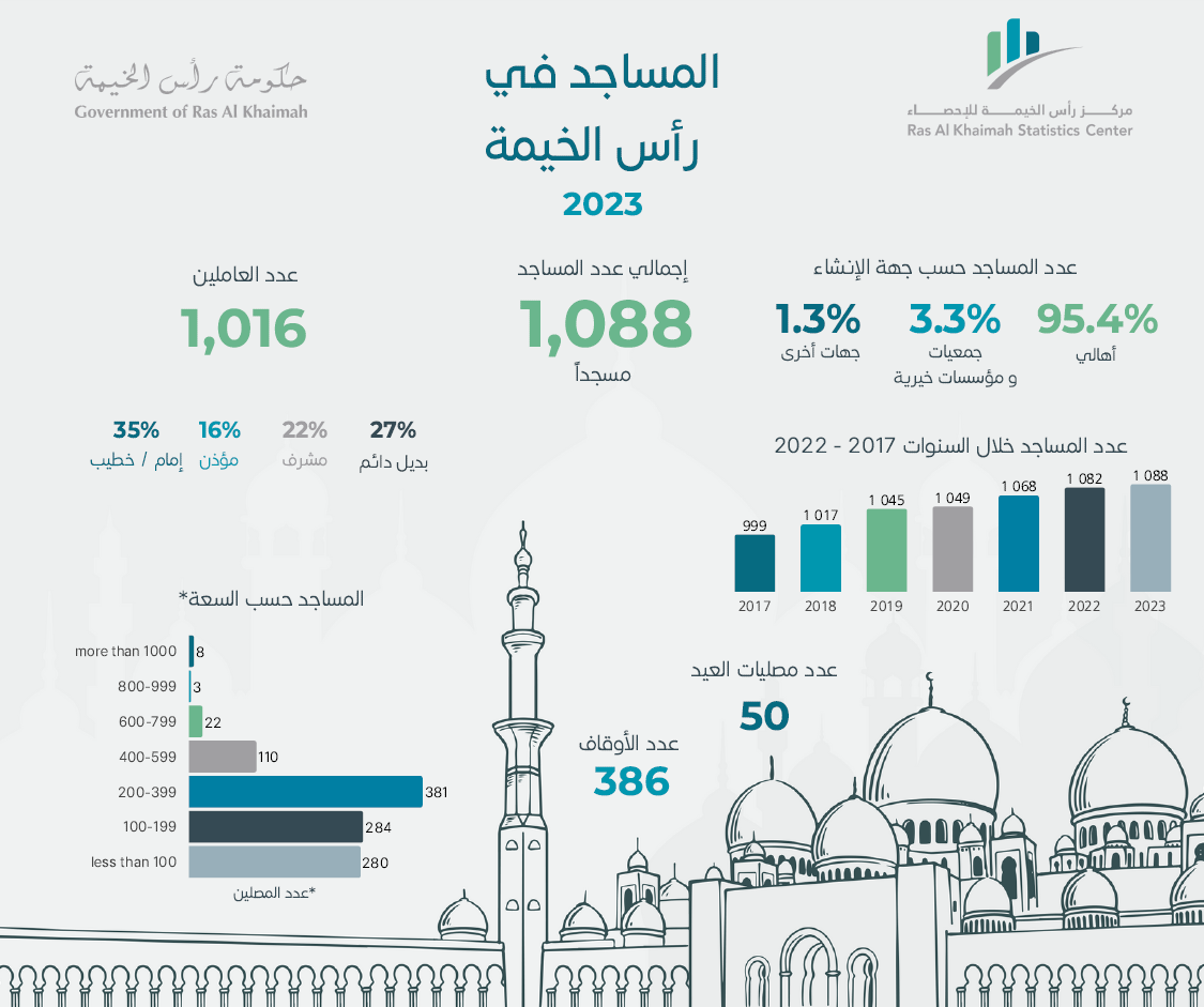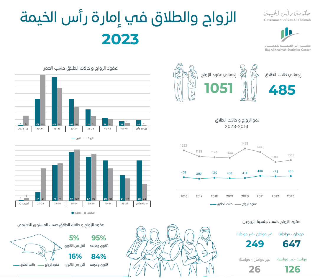 المساجد في رأس الخيمة بيانات 2023 انفوجرافيك الكتاب الإحصائي السنوي بيانات 2023 الزواج و الطلاق في رأس الخيمة بيانات 2023